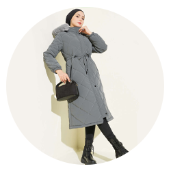 Zigzag Kapitone Kapüşonlu Şişme Mont Taş