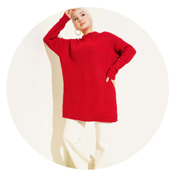 Basic Bisiklet Yaka Düz Triko Tunik Bordo