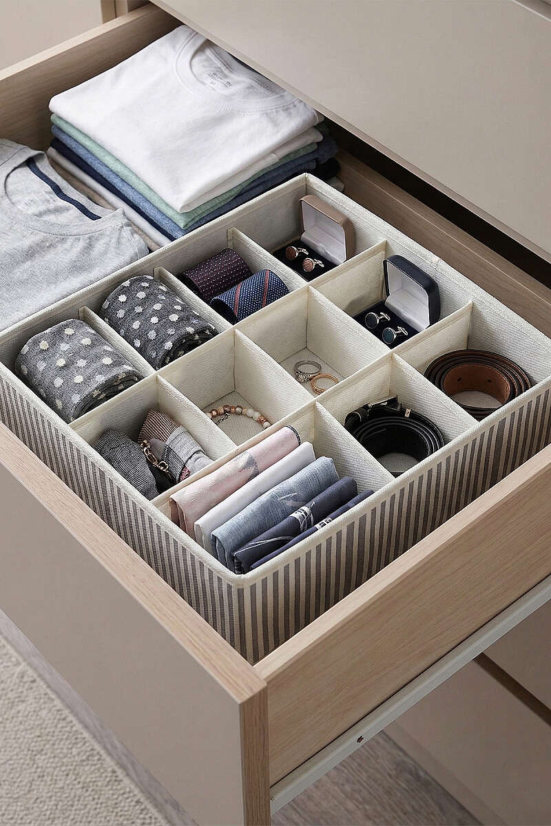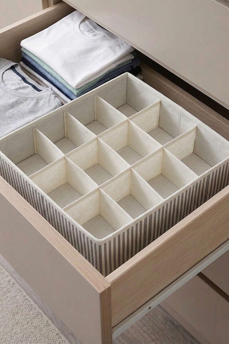 Çekmece içlerindeki karmaşaya son veren, eşyalarınızı hem düzenli hem de hijyenik bir şekilde saklamanızı sağlayan bu bölmeli düzenleyici, minimalist tasarımıyla evinizin her köşesine uyum sağlar.