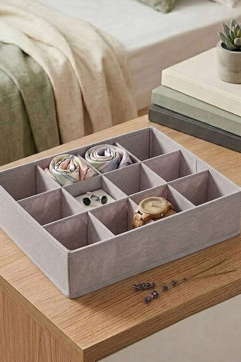 Çekmece içlerindeki karmaşaya son veren, eşyalarınızı hem düzenli hem de hijyenik bir şekilde saklamanızı sağlayan bu bölmeli düzenleyici, minimalist tasarımıyla evinizin her köşesine uyum sağlar.