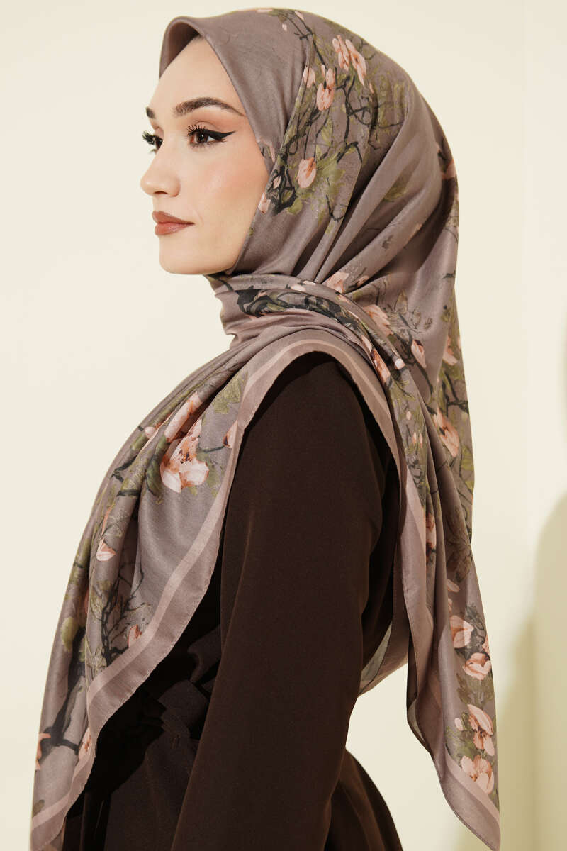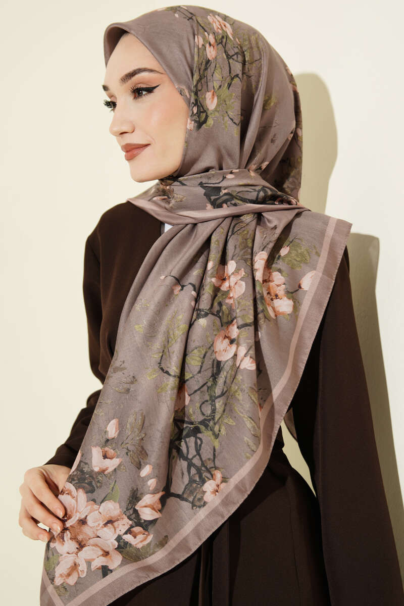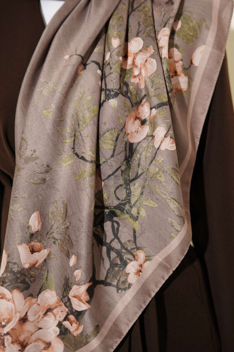 120 cm Çiçek Desen Eşarp Vizon
