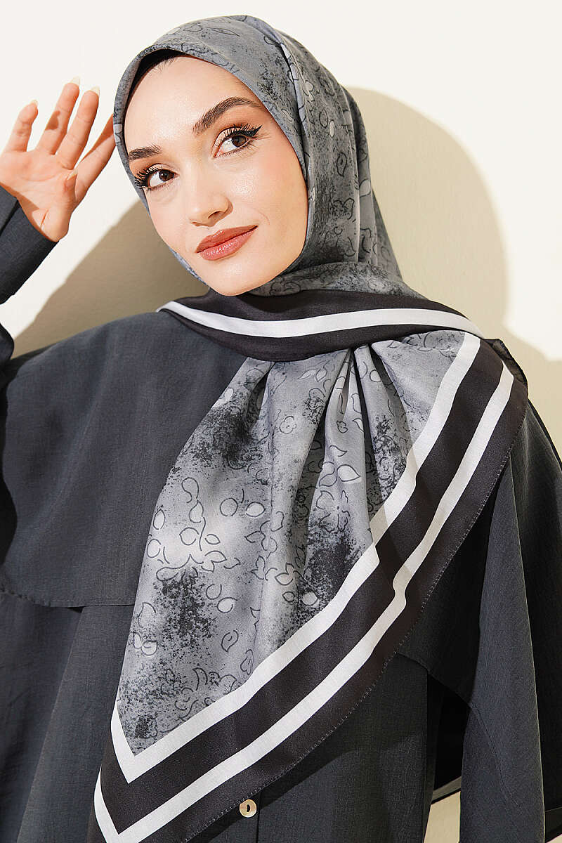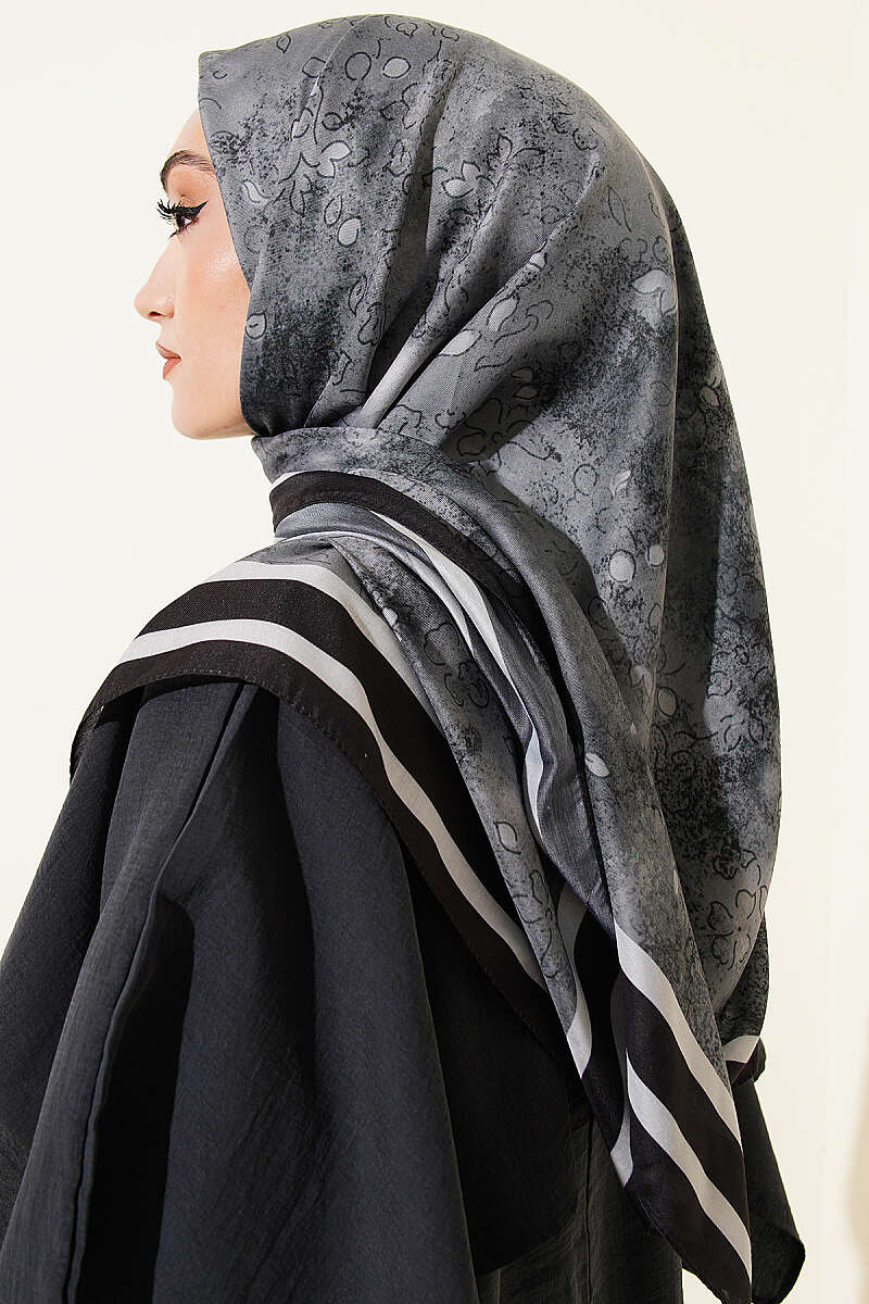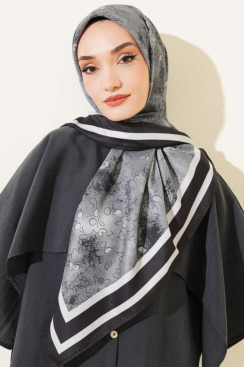 120 cm Çiçek Detaylı Soft Eşarp Siyah