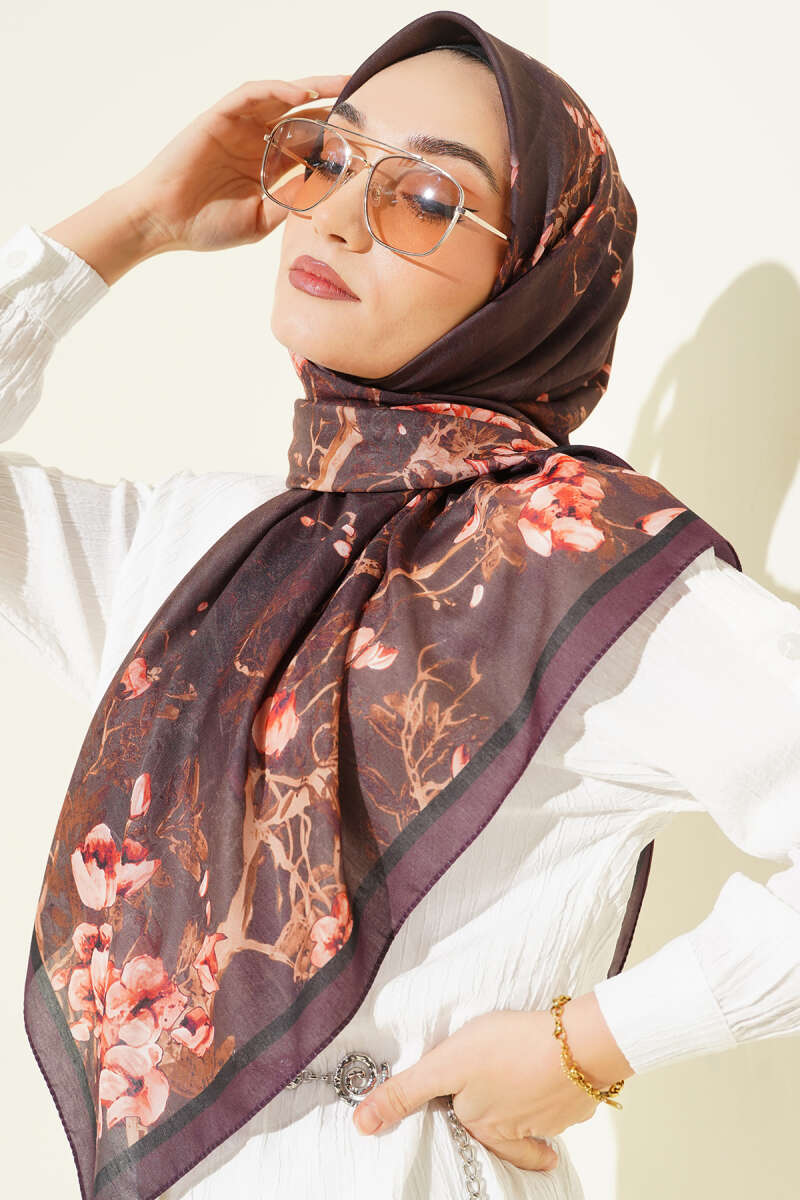 120 cm Çiçekli Soft Eşarp Mürdüm