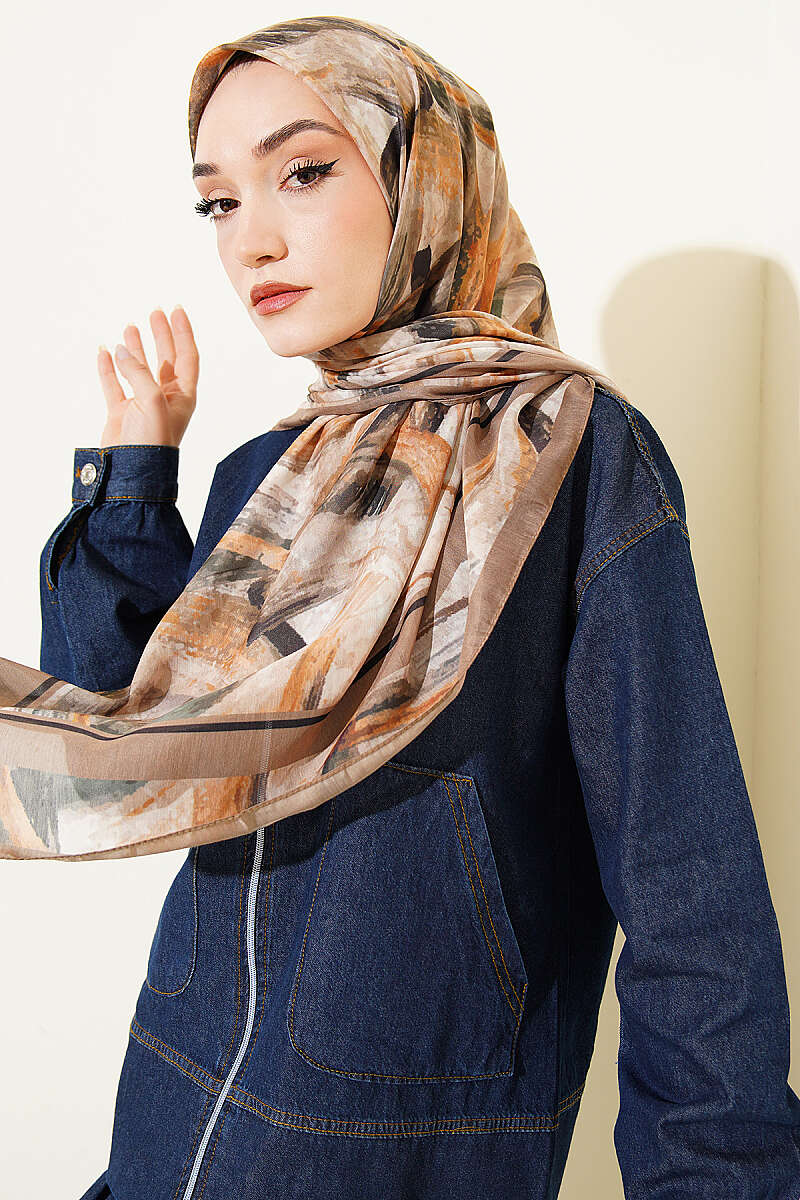 Karışık Desen Bambu Kraş Ayda Eşarp Vanilya