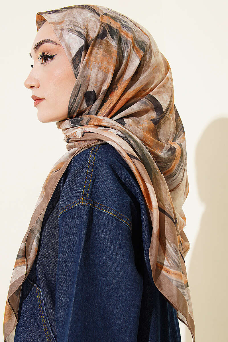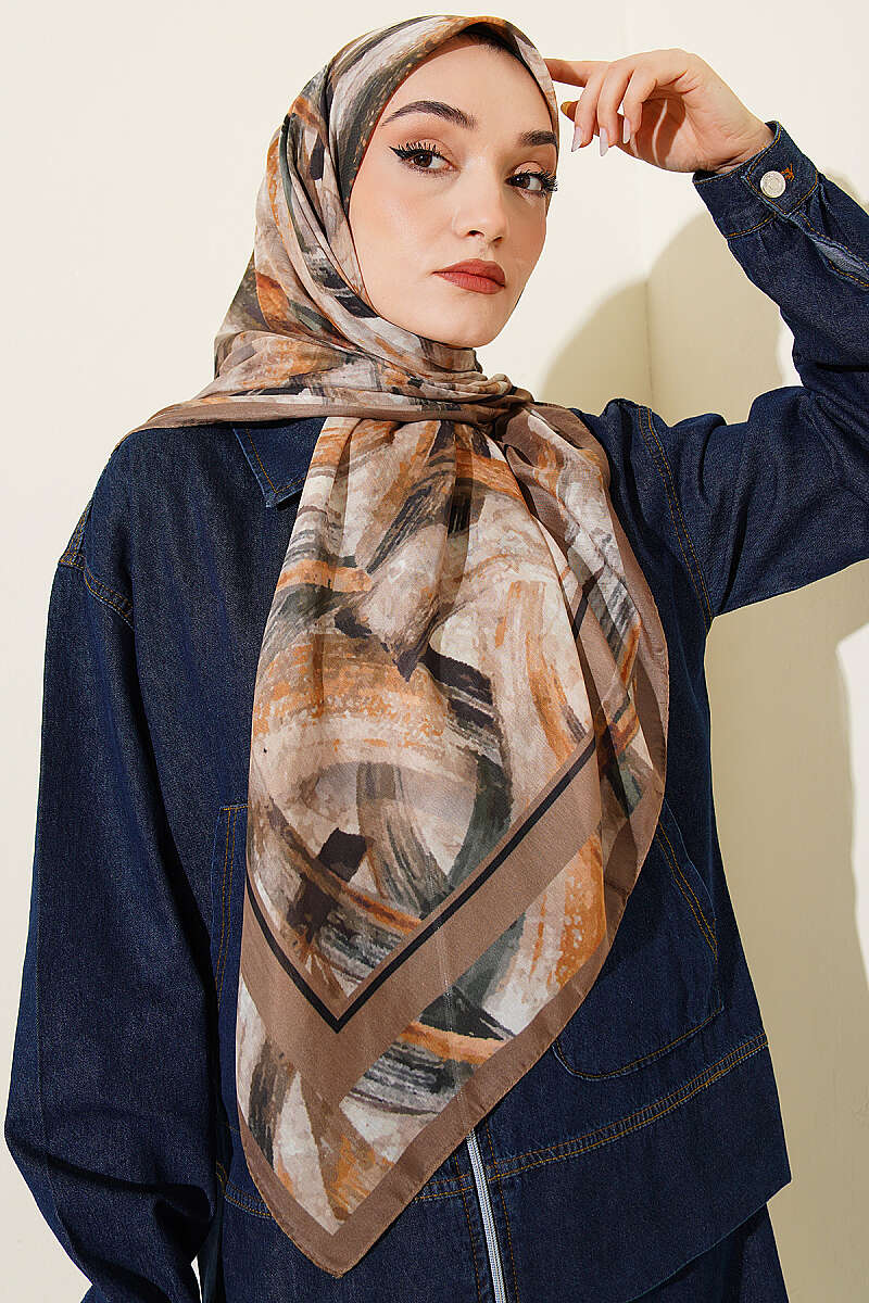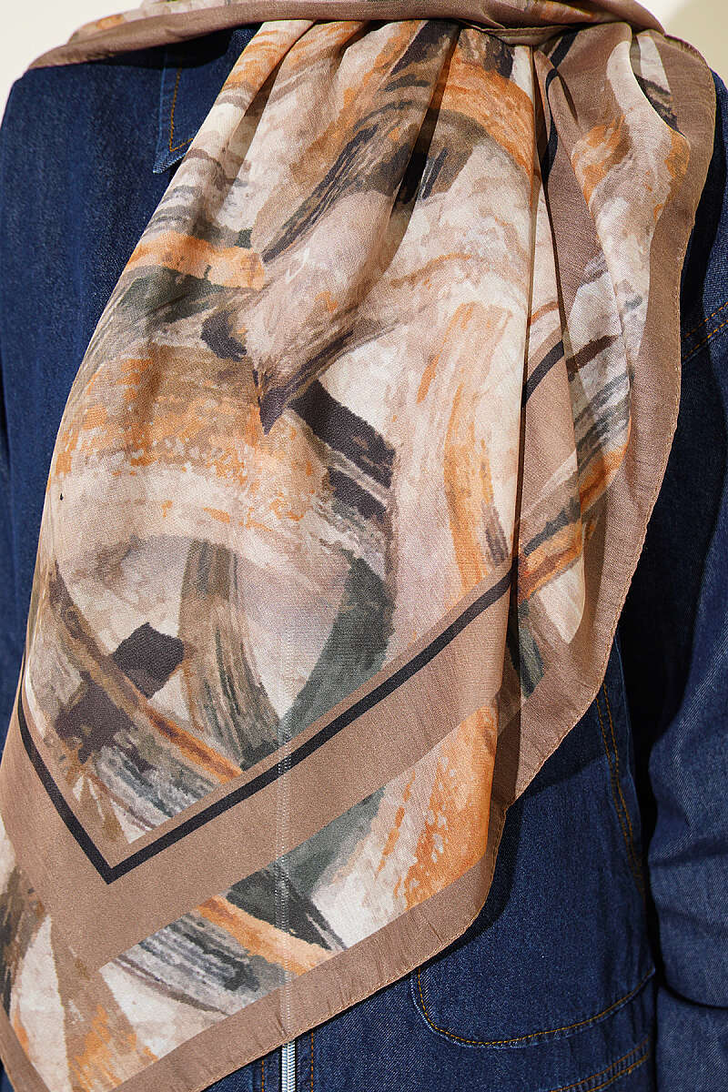 Karışık Desen Bambu Kraş Ayda Eşarp Kahve