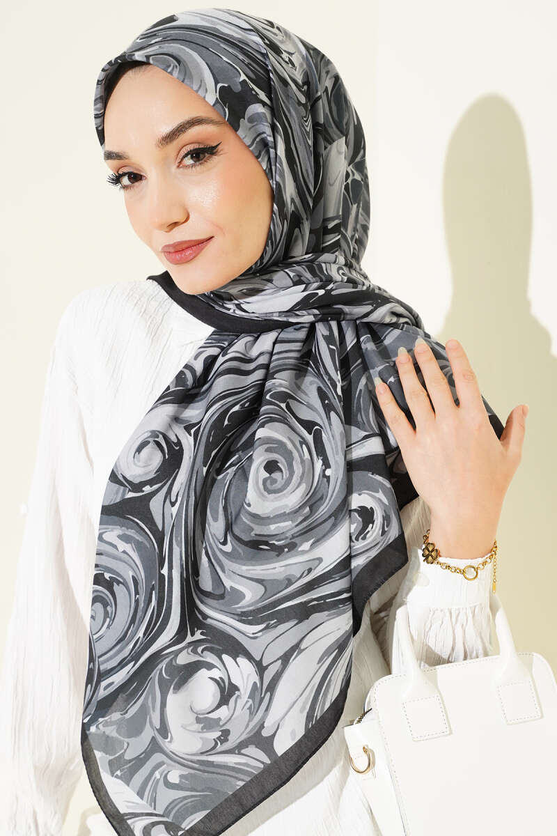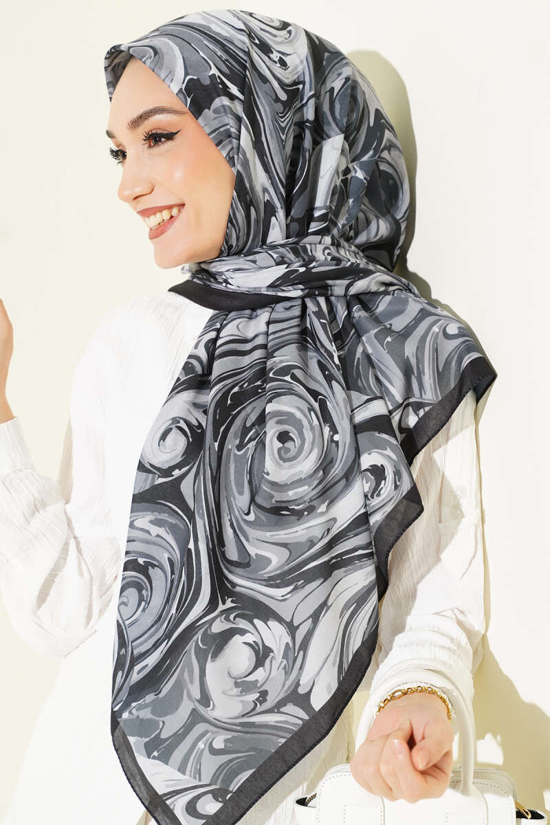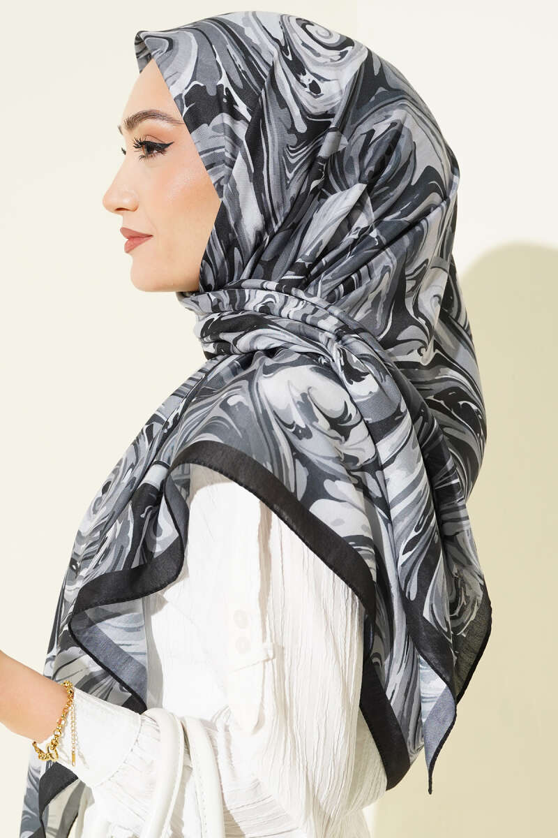 120 cm Sarmal Ebruli Eşarp Lacivert