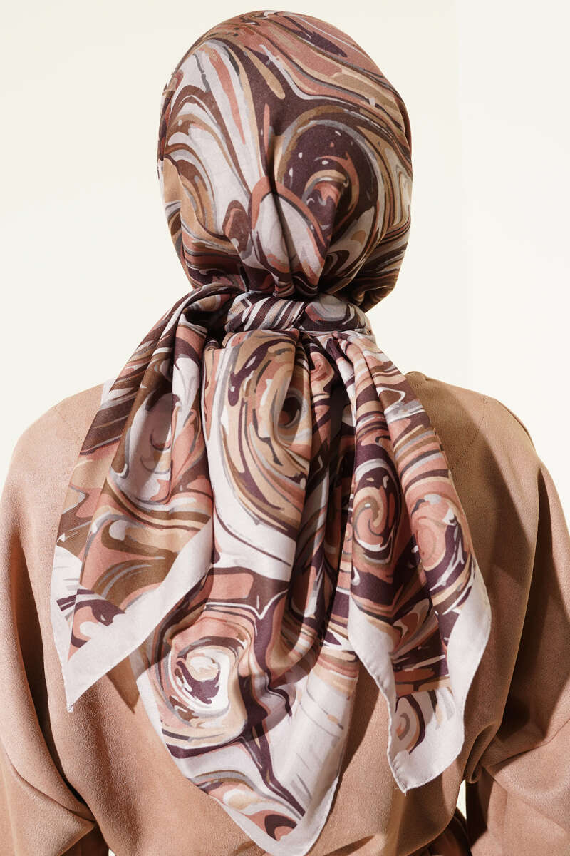 120 cm Sarmal Ebruli Eşarp Kahve
