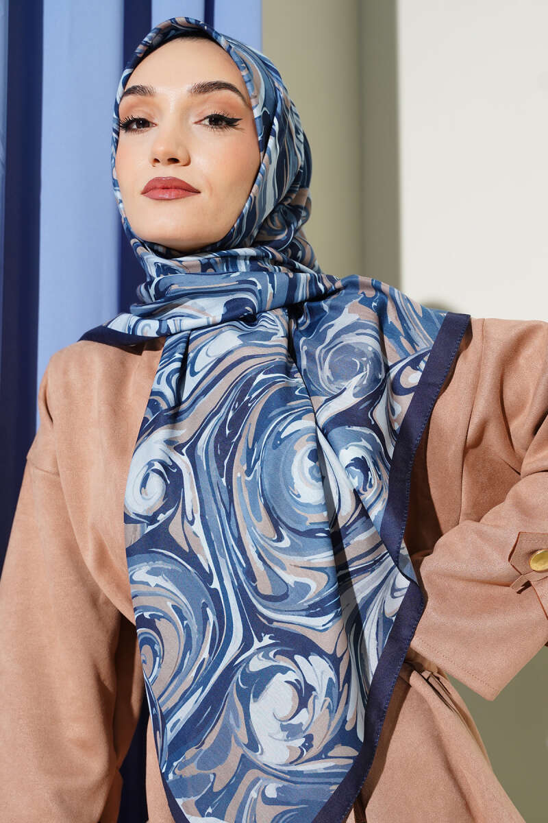 120 cm Sarmal Ebruli Eşarp Lacivert