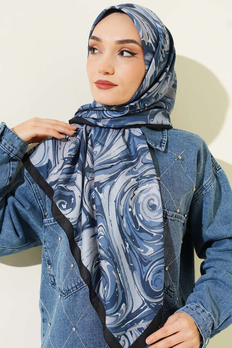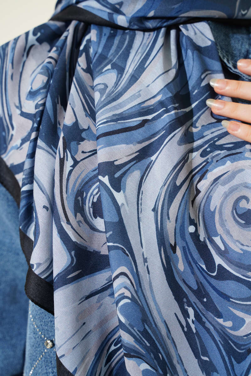120 cm Sarmal Ebruli Eşarp İndigo