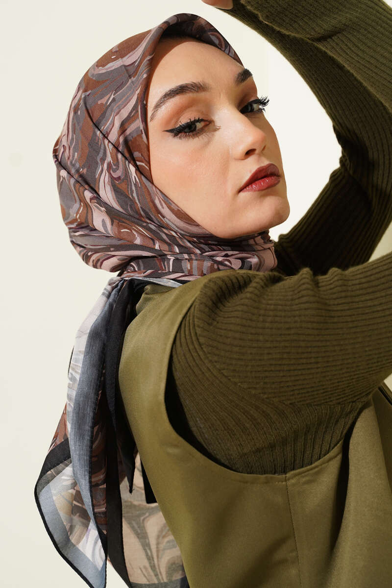 120 cm Sarmal Ebruli Eşarp Kahve