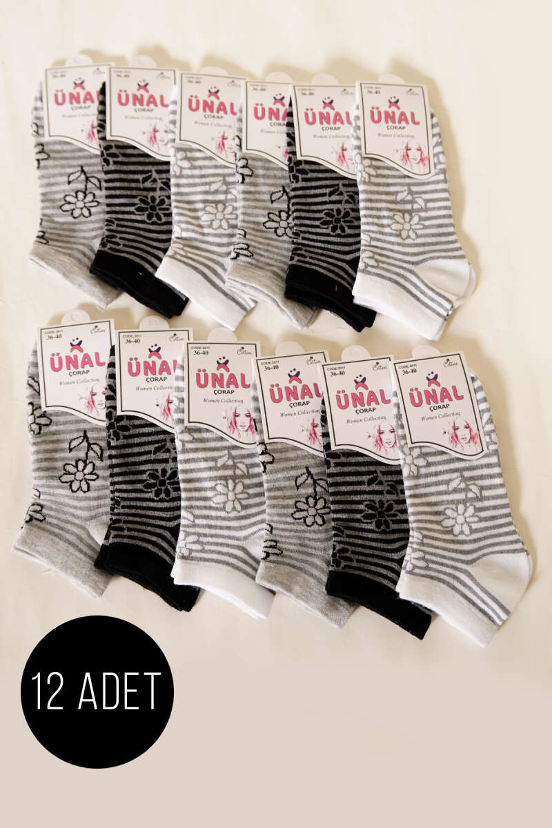 12'li Kadın Desenli Patik Çorap Asorti 17