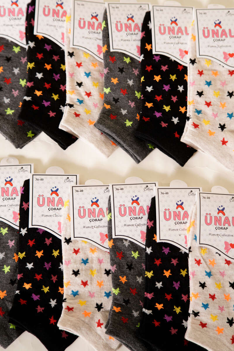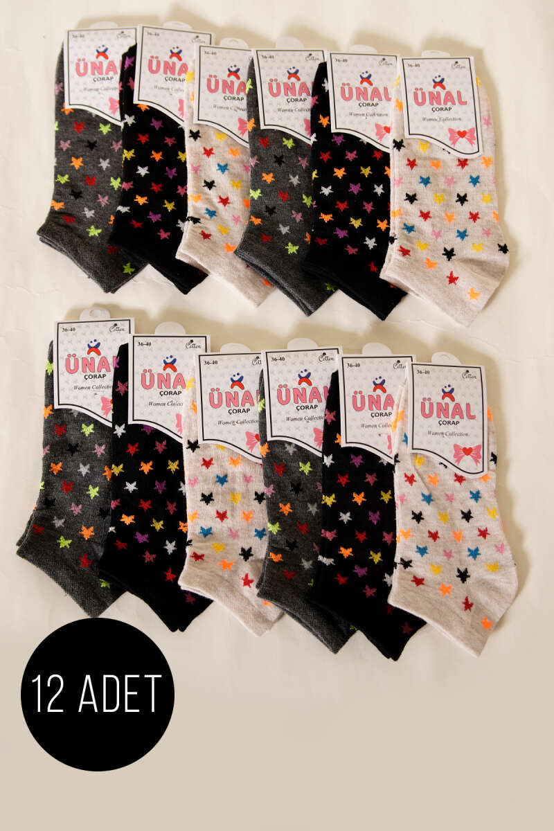 12'li Kadın Desenli Patik Çorap Asorti 2