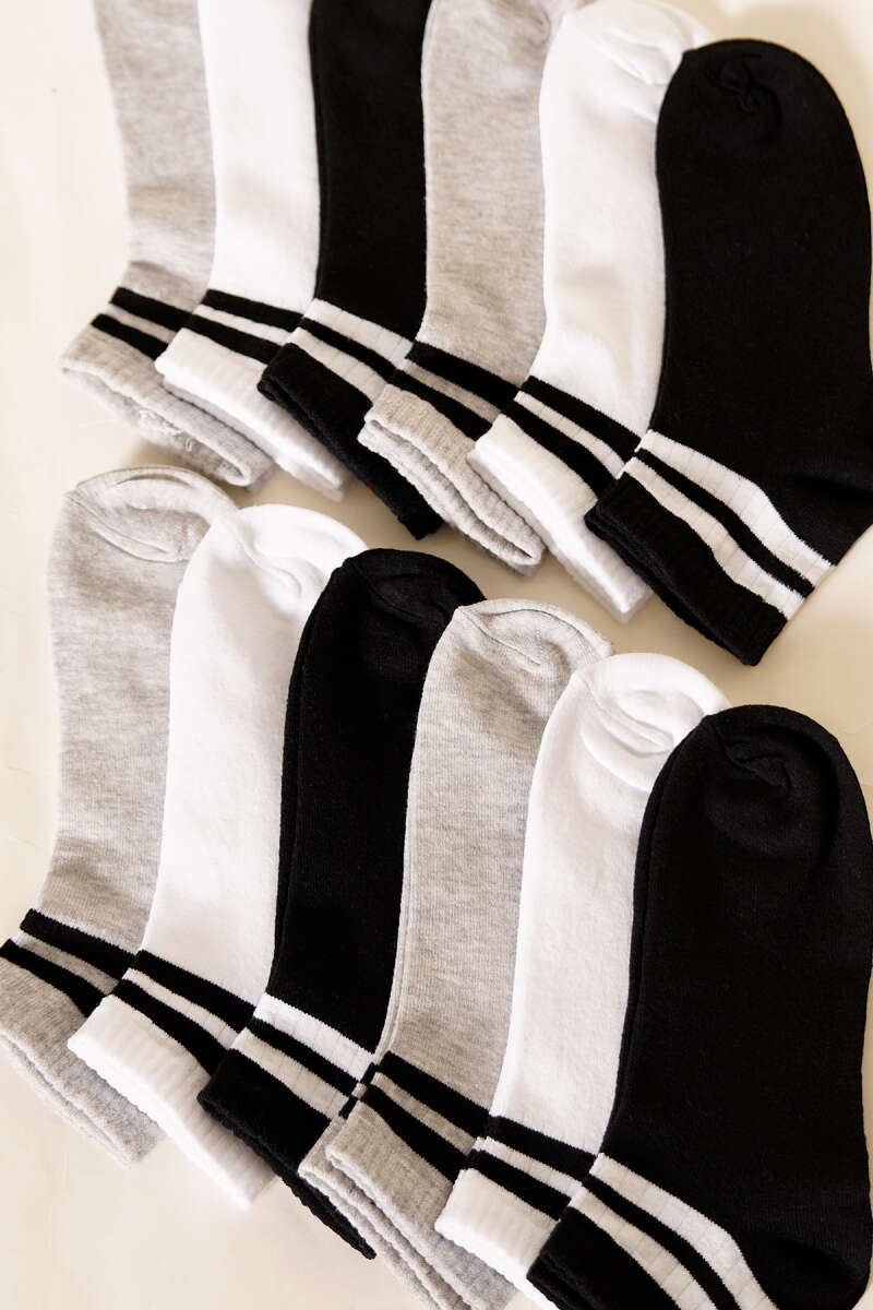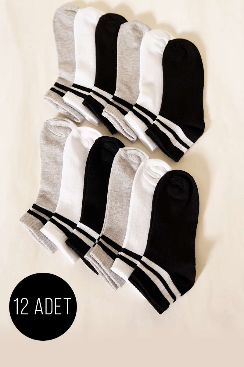 12'li Kadın Desenli Patik Çorap Asorti 12
