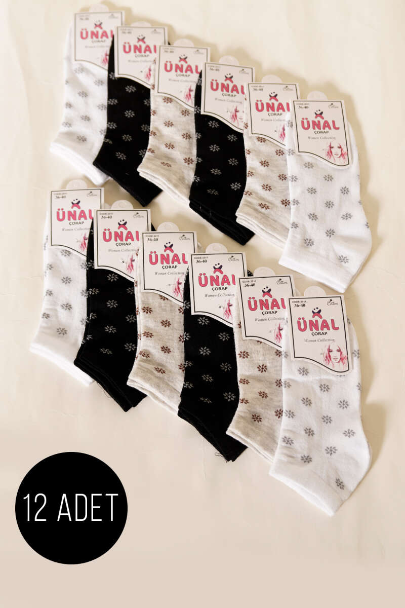 12'li Kadın Desenli Patik Çorap Asorti 12