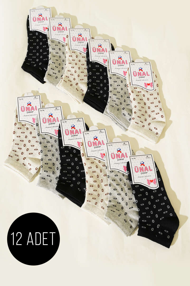 12'li Kadın Desenli Patik Çorap Asorti 18