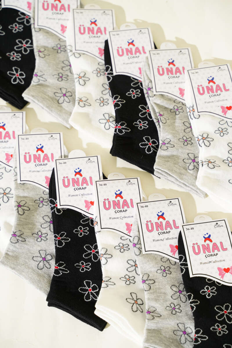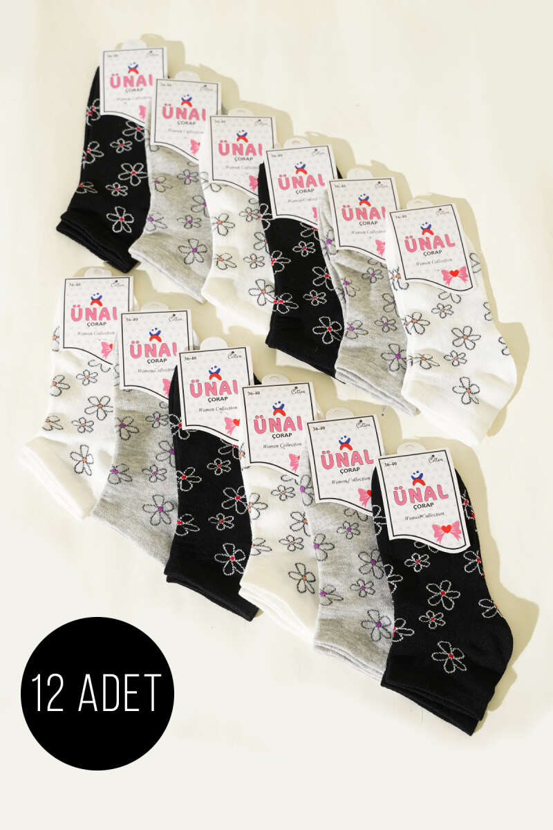12'li Kadın Desenli Patik Çorap Asorti 23