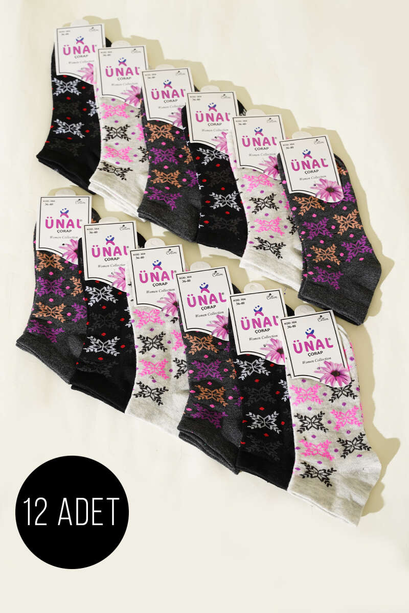 12'li Kadın Desenli Patik Çorap Asorti 24