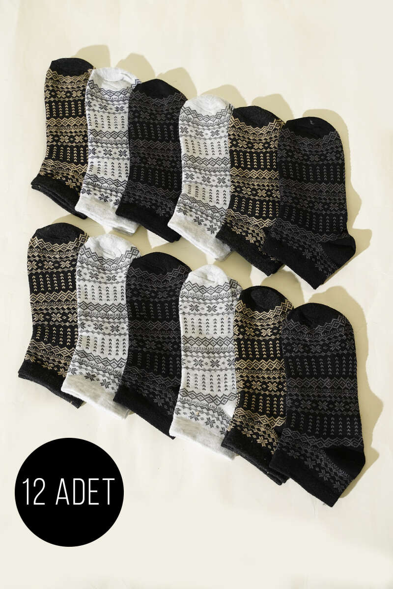 12'li Kadın Desenli Patik Çorap Asorti 26