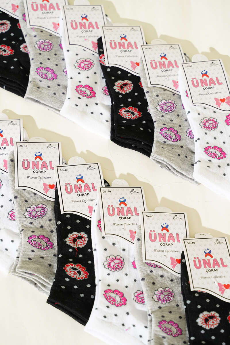 12'li Kadın Desenli Patik Çorap Asorti 24