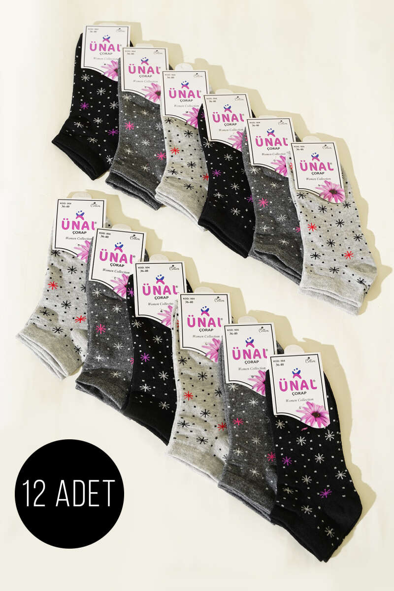 12'li Kadın Desenli Patik Çorap Asorti 28