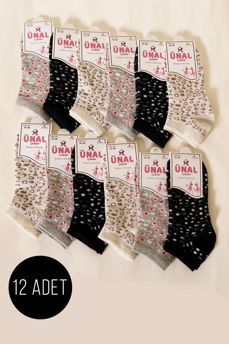 12'li Kadın Desenli Patik Çorap Asorti 12