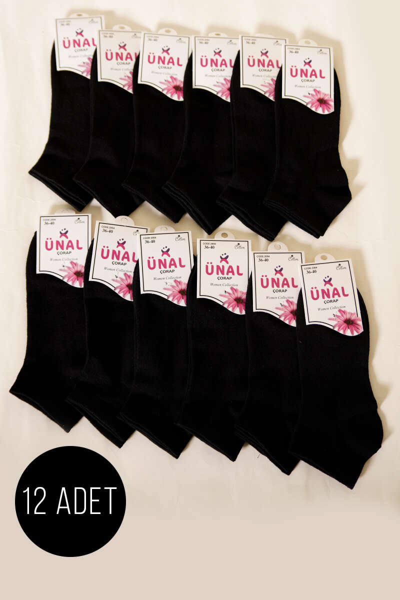 12'li Kadın Desenli Patik Çorap Siyah