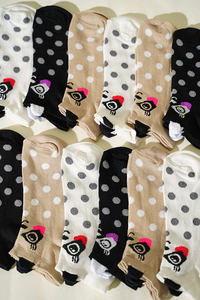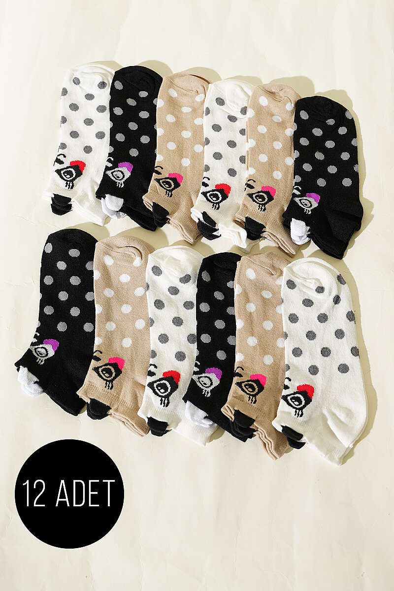 12'li Kadın Kulaklı Desenli Patik Çorap Asorti 2