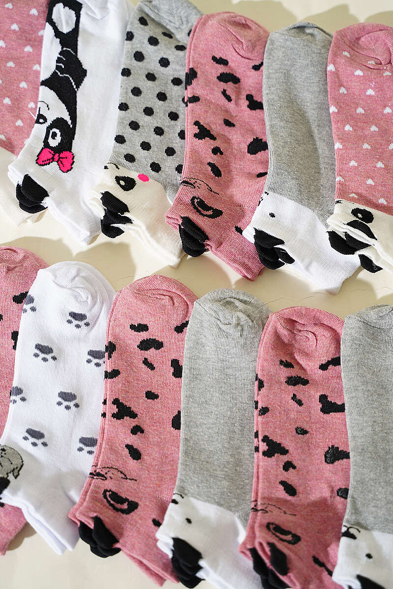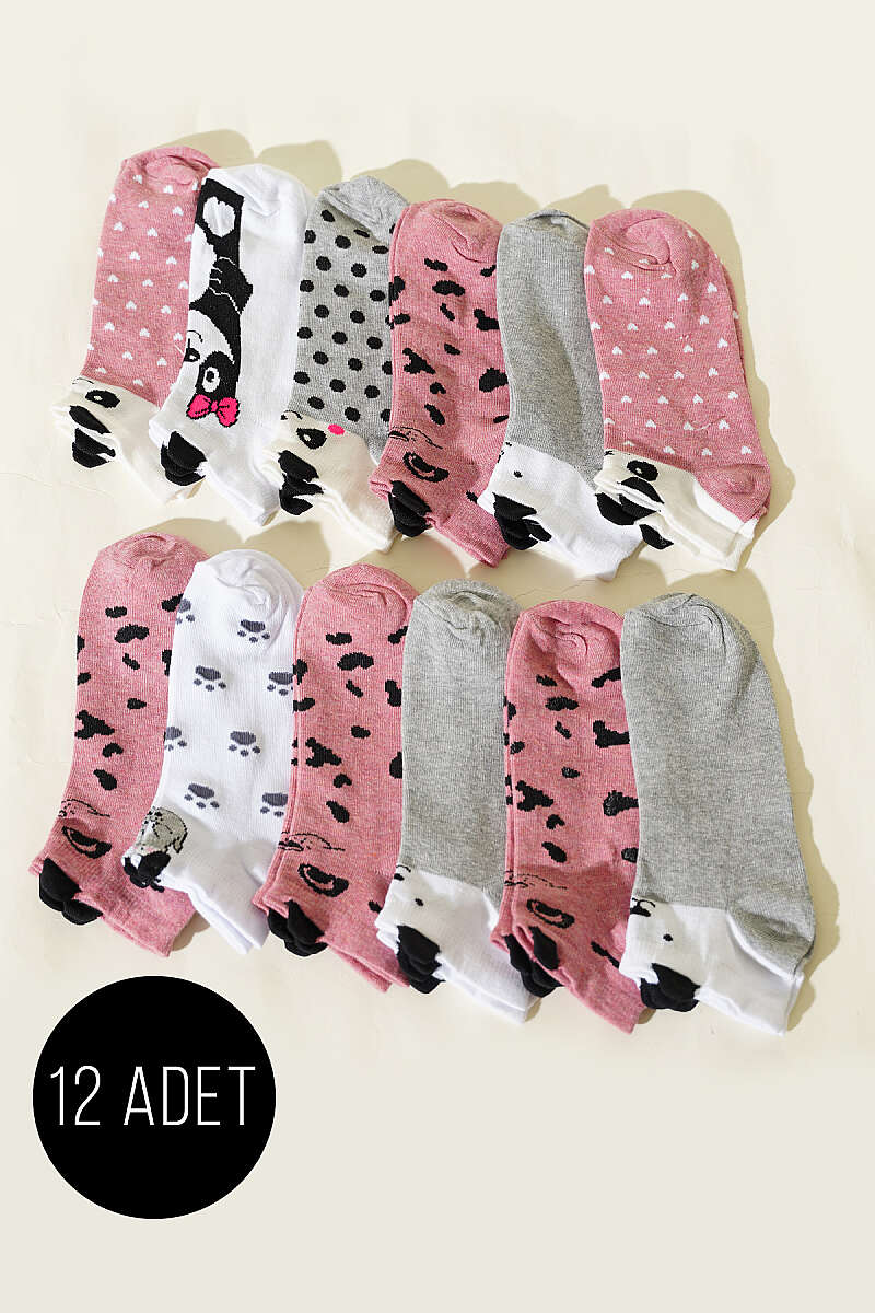12'li Kadın Kulaklı Desenli Patik Çorap Asorti 3