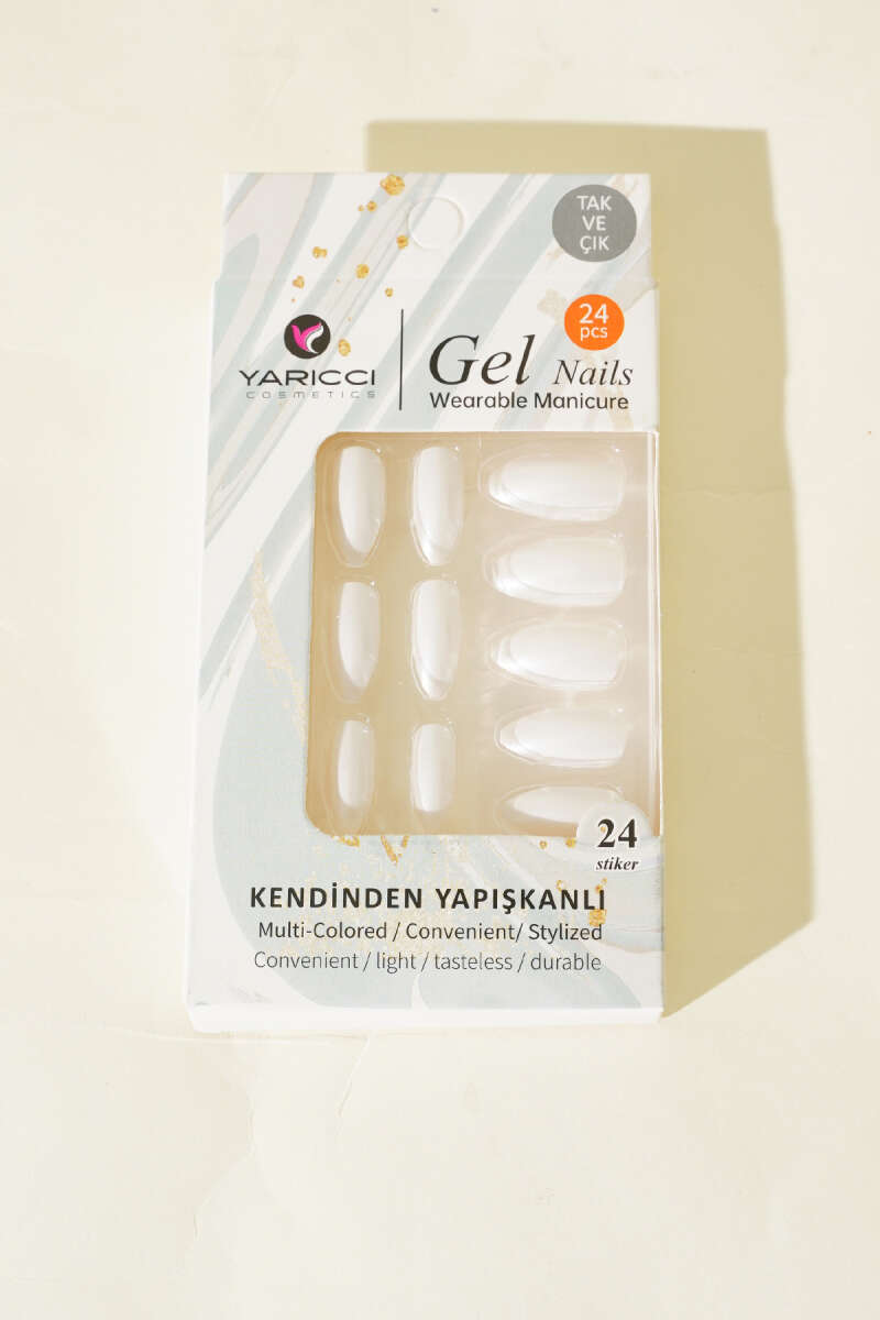 • Şeffaf yapışkanları çıkarıp tırnağa yapıştırarak anında hazır.
