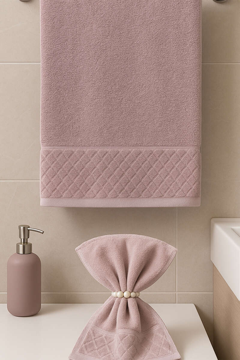2'li Analı Kızlı Havlu Seti Gül Kurusu