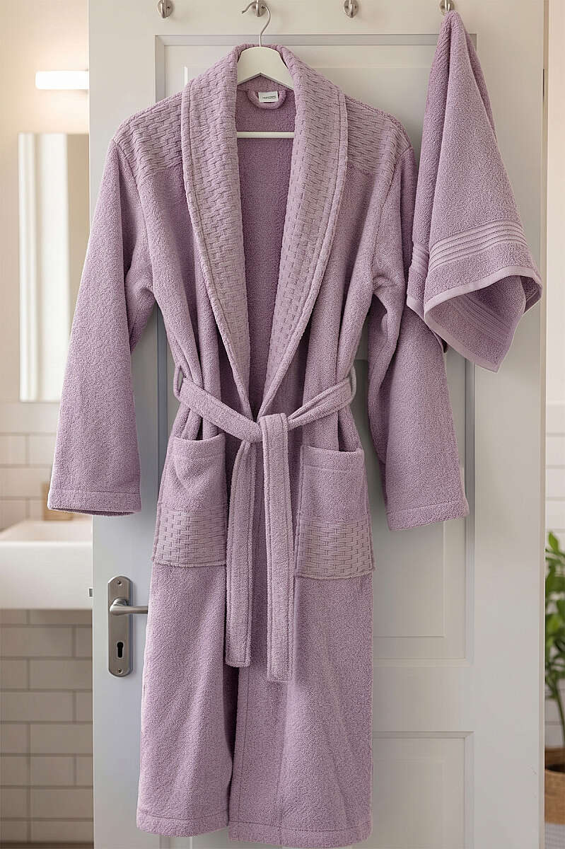 2'li Bornoz ve Havlu Takım Gül Kurusu