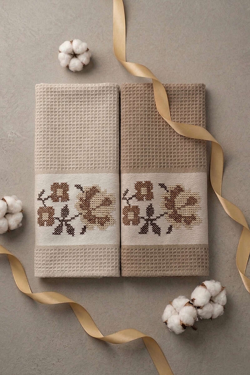 2'li Kutulu Gül Motifli Havlu Seti Asorti 10