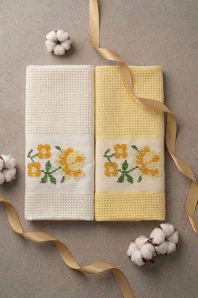 2'li Kutulu Gül Motifli Havlu Seti Asorti 10