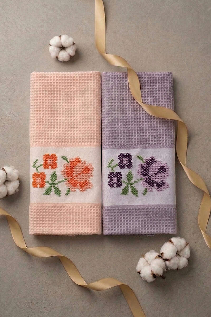 2'li Kutulu Gül Motifli Havlu Seti Asorti 10