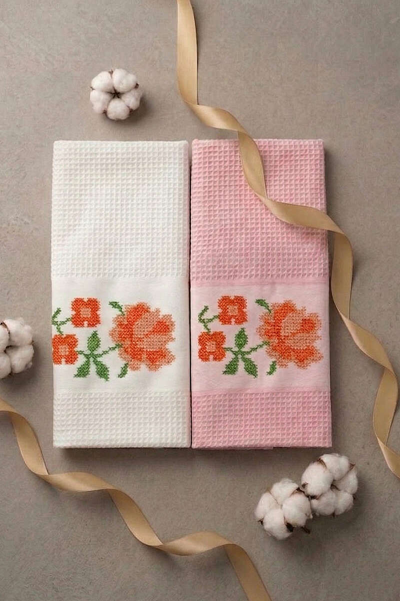 2'li Kutulu Gül Motifli Havlu Seti Asorti 10