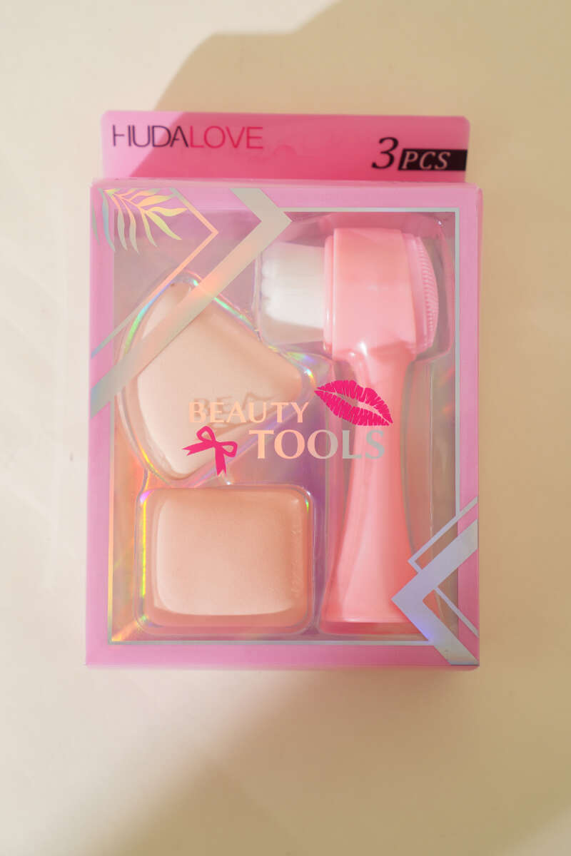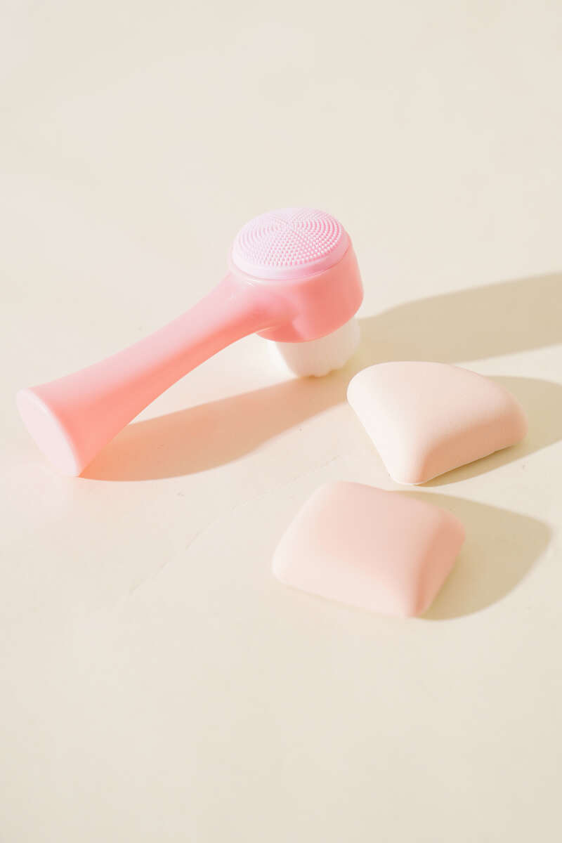 2'li Süngerli + Yüz Temizleme Fırçası Pembe