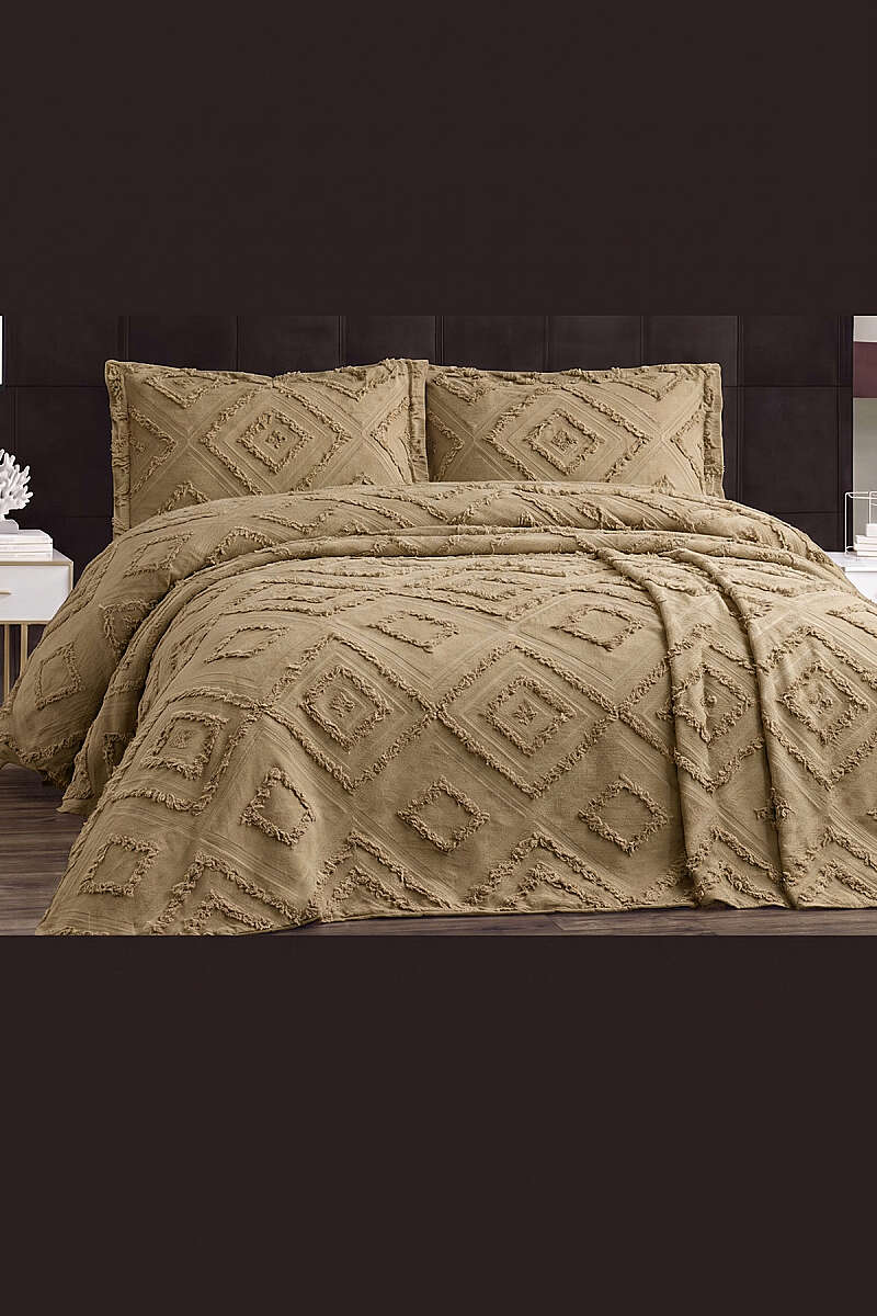 3 Parça Kare Desen Pike Takımı Cappucino