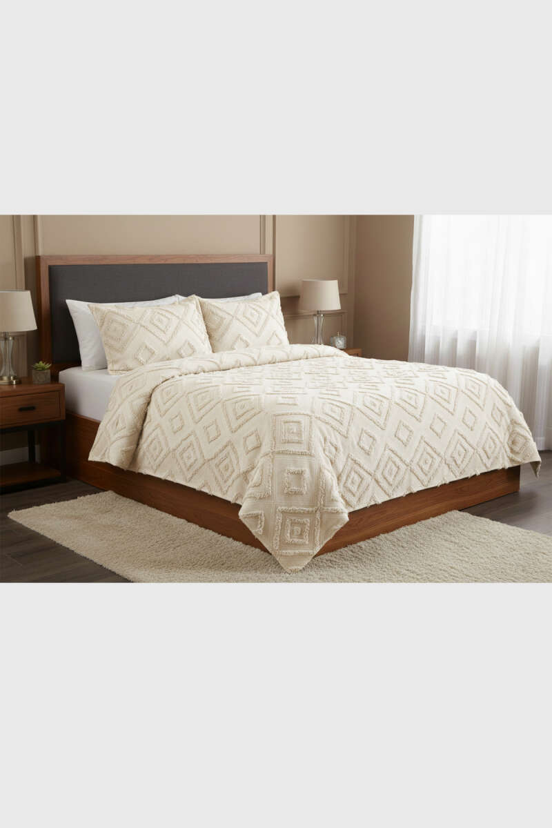 3 Parça Zümrüt Çift Kişilik Pike Takımı Krem