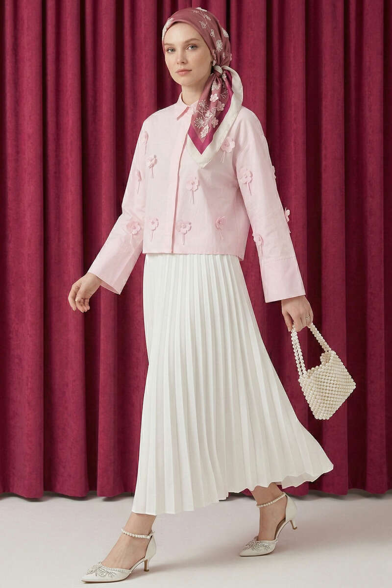 Beli Lastikli Cepli Kloş Etek Beyaz