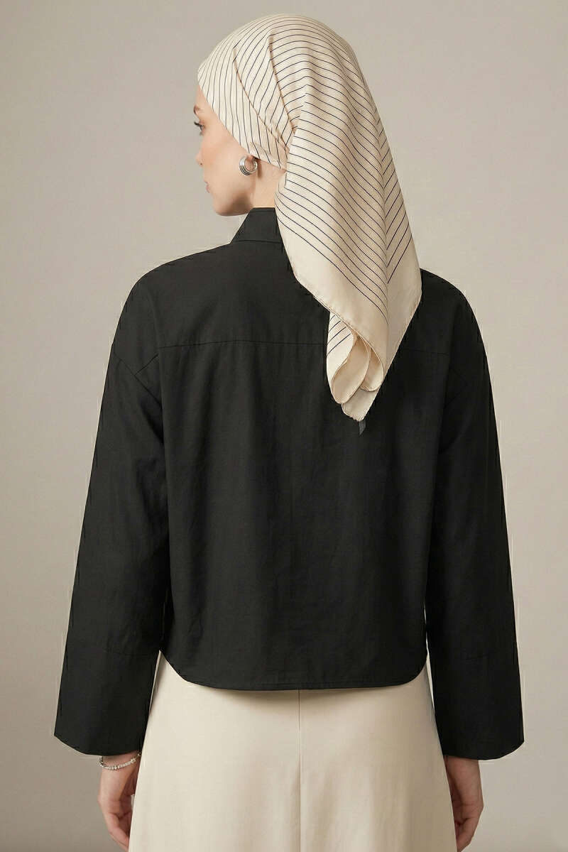 Metal Düğmeli Omuz Pelerinli Gömlek Siyah