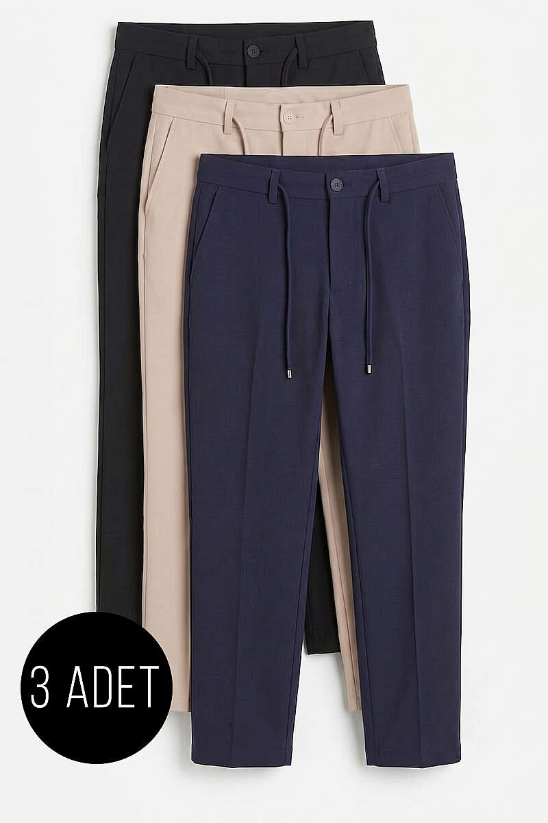 3'lü Bel Lastikli Dar Paça Erkek Kumaş Pantolon Asorti 3