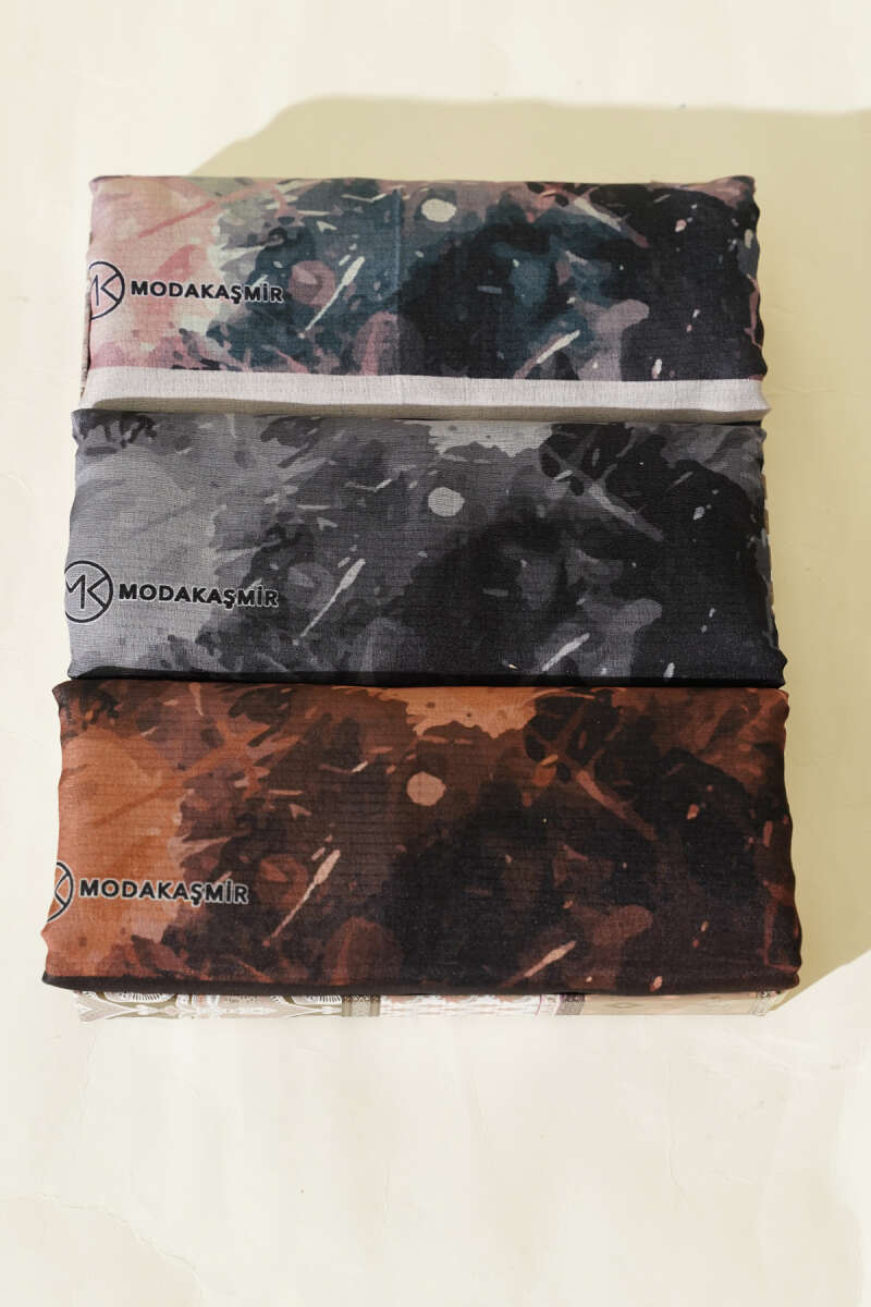 3'lü Ebruli Çiçek Desenli Soft Şal Seti Asorti