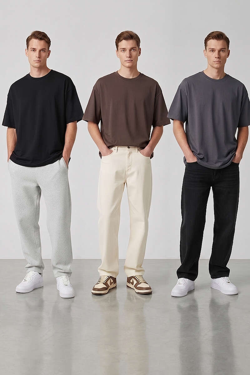 3'lü Kısa Kollu Oversize Erkek T-shirt Asorti 2