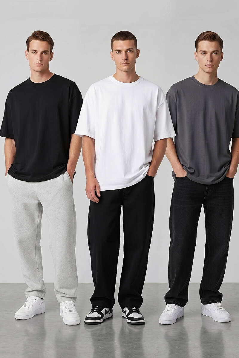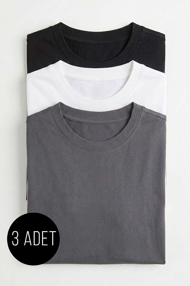 3'lü Kısa Kollu Oversize Erkek T-shirt Asorti 4
