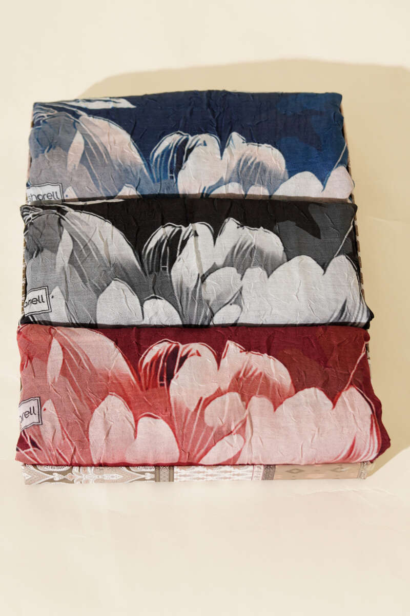3'lü Çiçek Desenli Bambu Kraş Şal Seti Asorti 1