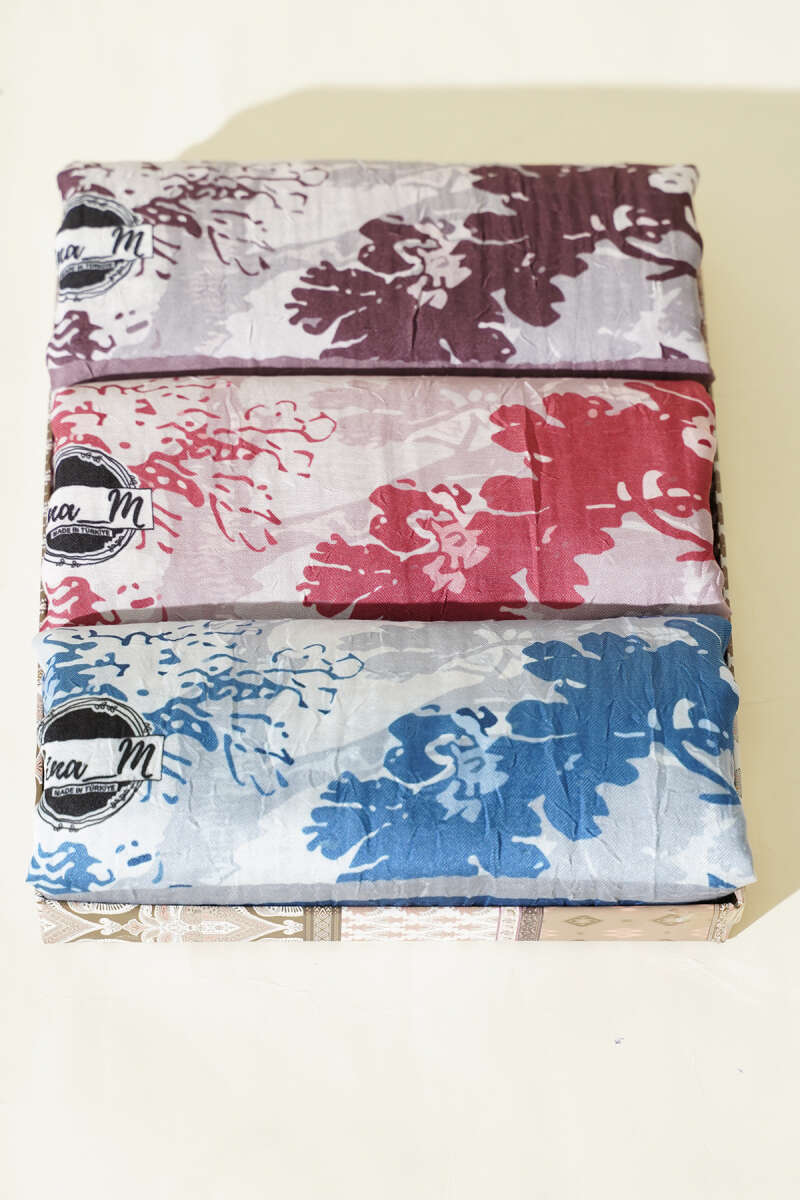 3'lü Çiçek Desenli Bambu Kraş Şal Seti Asorti 1