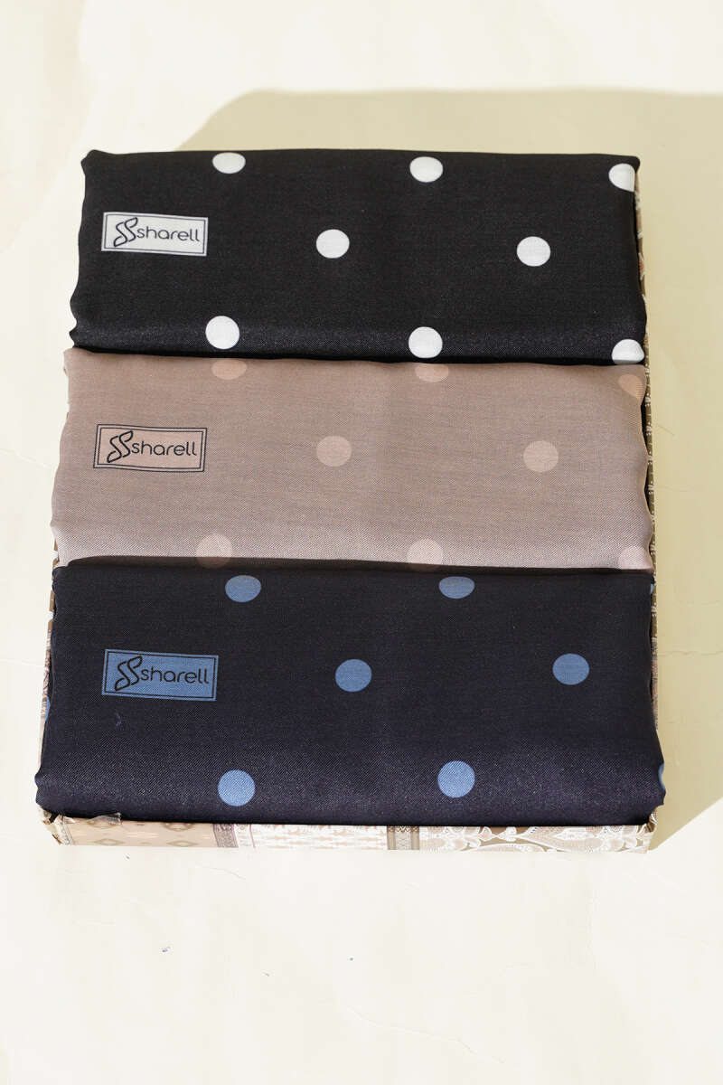 3'lü Retro Puantiye Desenli Şal Seti Asorti