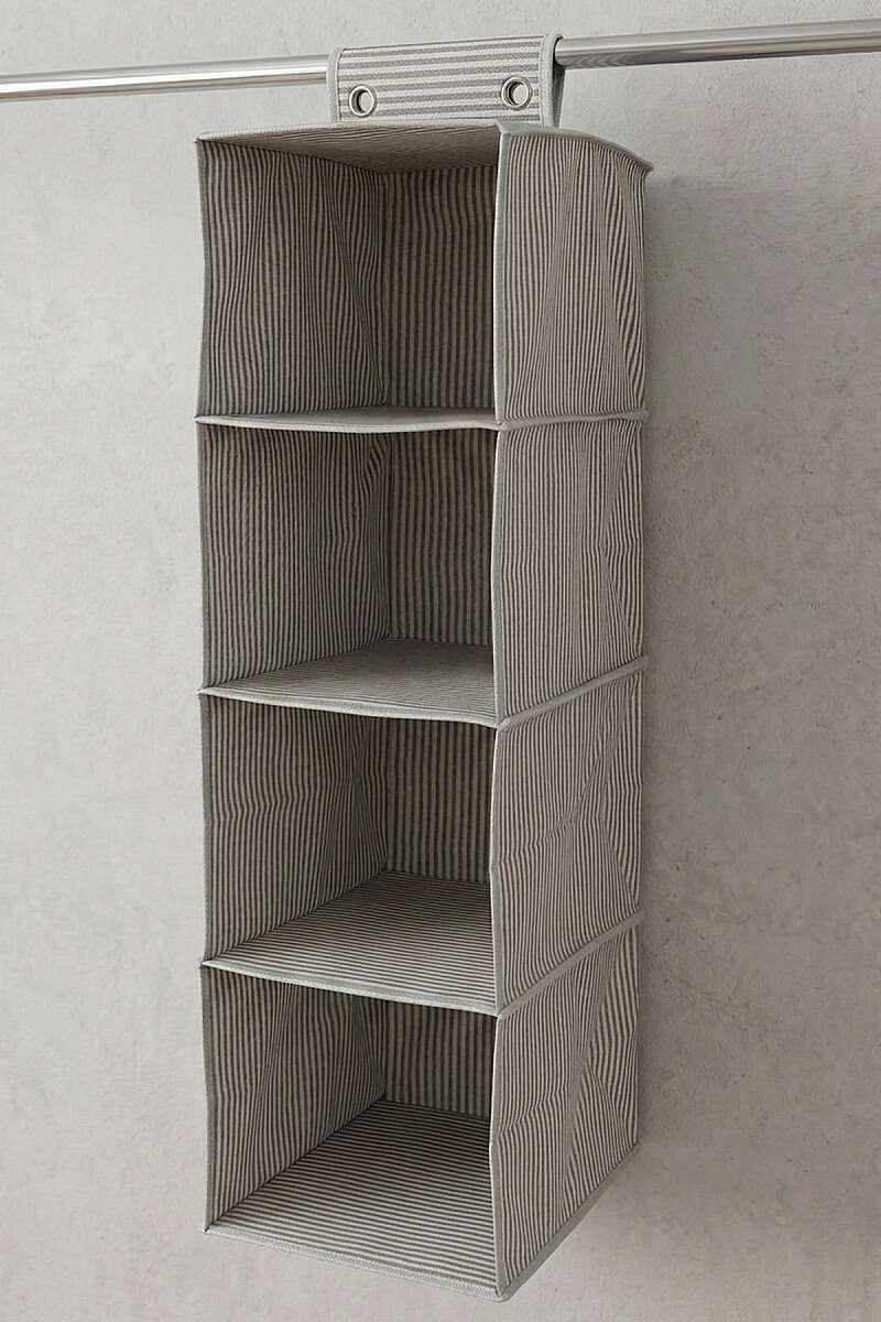 4 Bölmeli Çizgili Askılı Dolap İçi Düzenleyici Gri