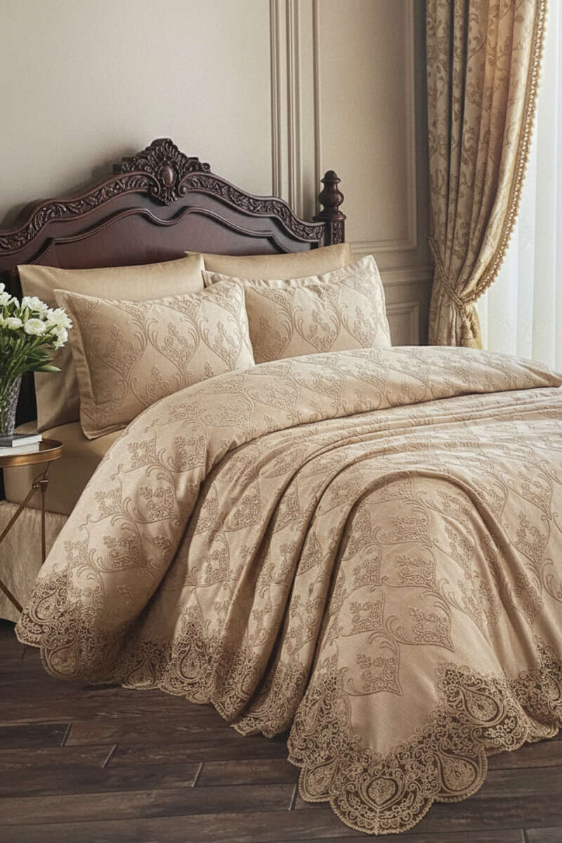 40 derecede yıkayınız.Düşük devirde kurutma ve yumuşatıcı kullanımı önerilir.Benzer renklerle yıkayınız.Ütü Yapılabilir.Kuru Temizleme Yapılamaz.Elde Yıkama Yapılabilir.Makinede Yıkama YapılabilirÜrün Özellikleri• 6 parçadan oluşan set içeriğiyle ihtiyacınız olan her şey tek pakette.• Kolay bakım imkanı sunan yıkama talimatlarına sahip olması pratik kullanım vaat eder.• Kendi özel set kutusunda gönderilmektedir.Boyut:6 ParçaPike 250 x 260 cm 1 AdetÇarşaf 220 x 240 cm 1 AdetKırlent 50 x 70 cm (2 Adet)Yastık 50 x 70 cm (2 Adet)