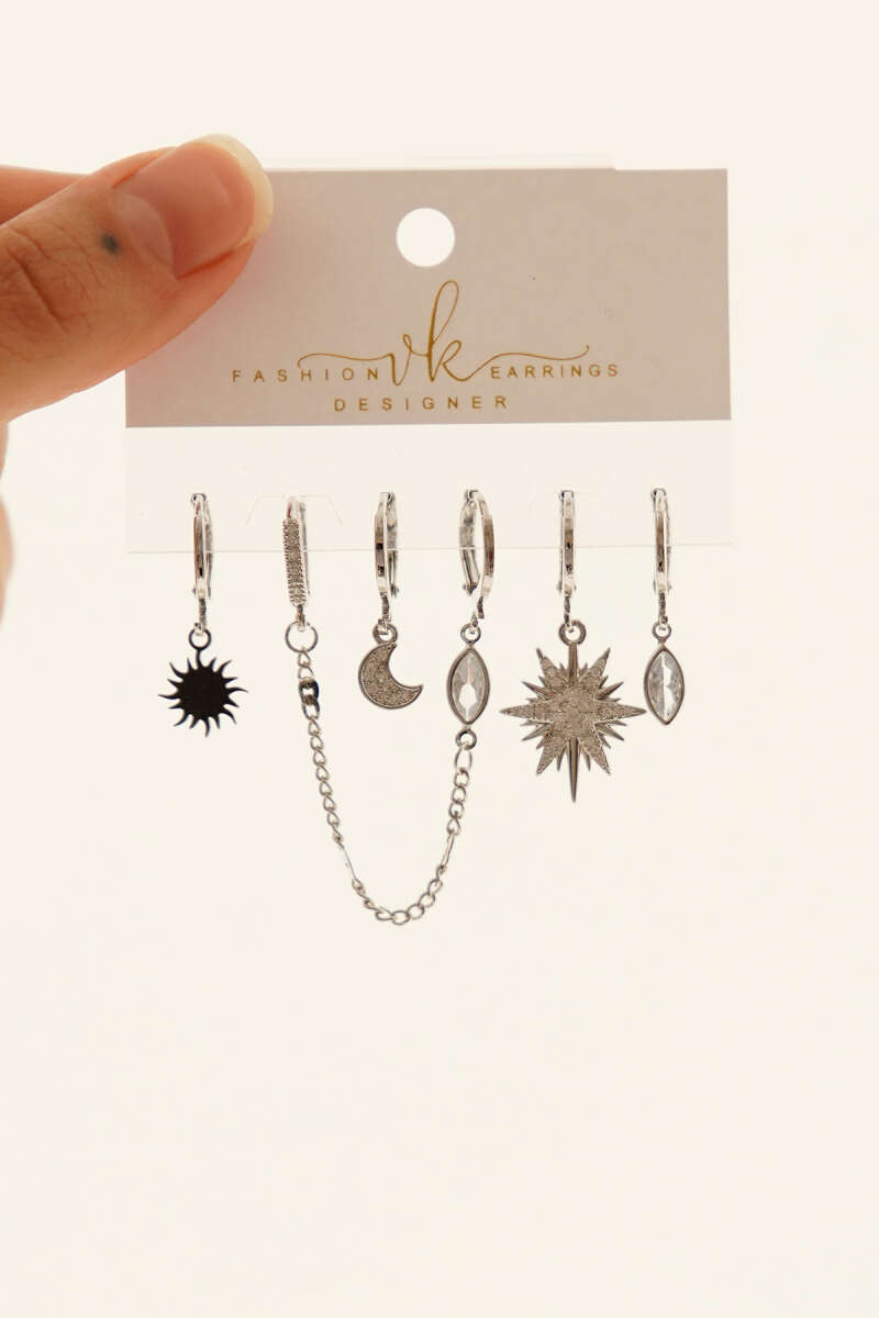 6'lı Kombin Ay Figürlü Küpe Seti Gümüş